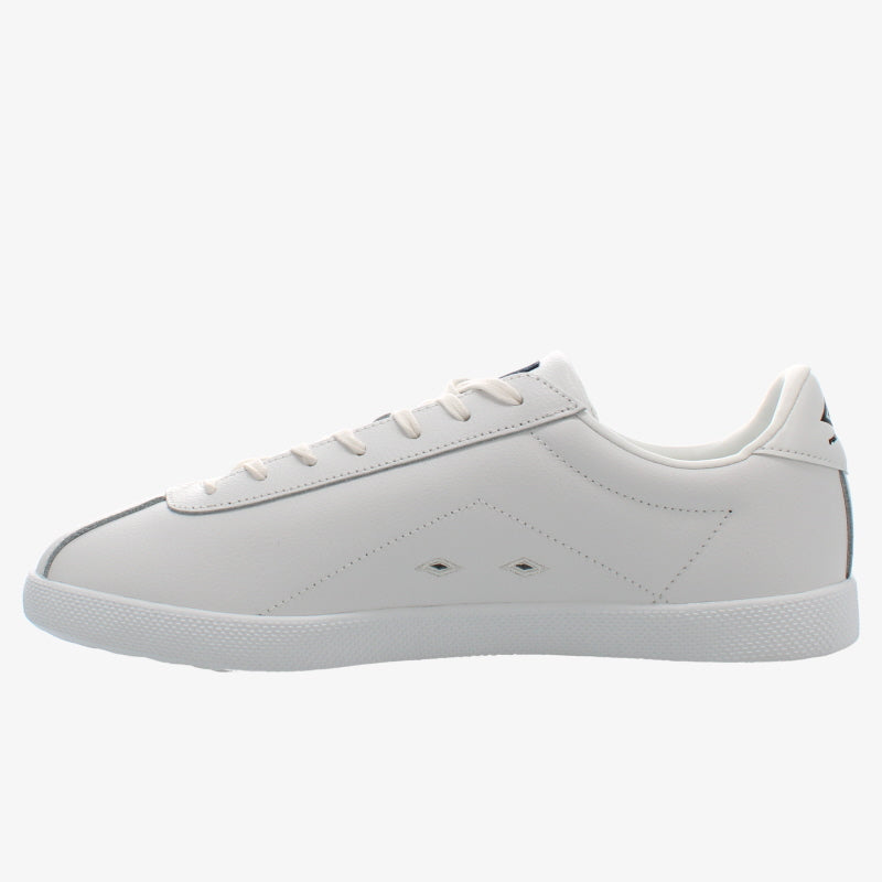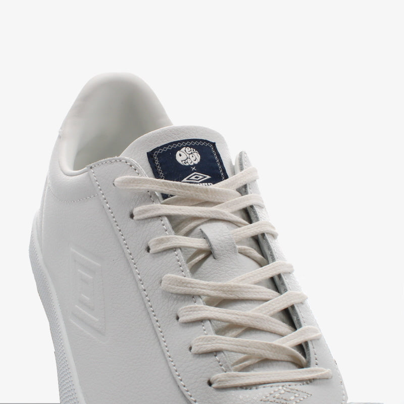 Details - Trainers from the Pretty Green and Umbro collaboration. Fully white synthetic leather with discreet Umbro branding to side with rubber soles. Co-branding to the tongue and on the insole.