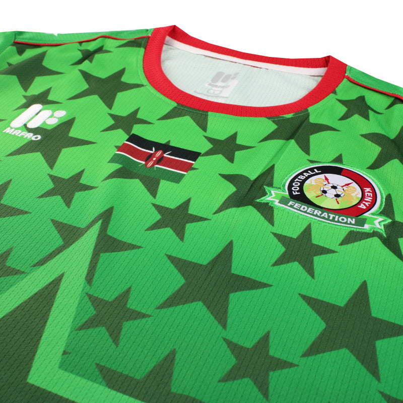 Third shirt as worn when Kenya were attempting to qualify for the 2019 Africa Cup of Nations, successfully qualifying for the competition after finishing as runners up in their qualification group.