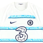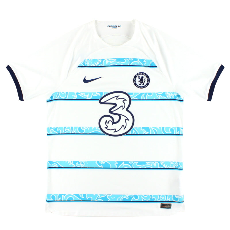 Away shirt as worn when Chelsea were looking to improve on their 3rd place finish in the Premier League in Todd Boehly's first full season as owner. Chelsea finished the season in mid table in the Premier League with a disappointing start to the season leading to the sacking of Thomas Tuchel. Graham Potter took over as manager and form did not improve with Chelsea only winning 12 of their 31 games with Graham Potter as manager before Frank Lampard took over as interim manager until the end of the season.