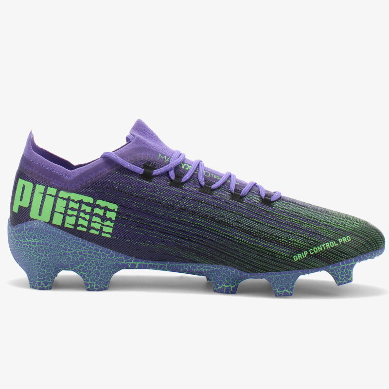 Details - Sample Puma 1.1 artificial grass boots. This Puma ultra 1.1 FEAR were released for Haloween with the Luminous purple/Electro geen colourway. The boots also feature a GripControl Pro coating for decisive command over the ball. The sole plate is purple with the silo's trademark pattern added in 'elektro green'.