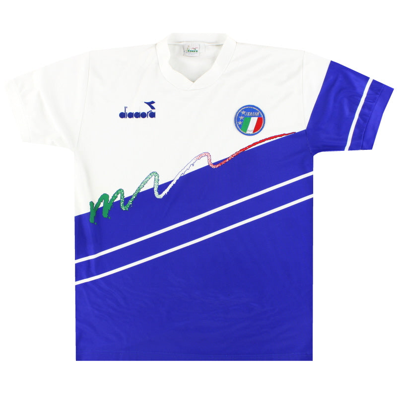 Training shirt as worn when Italy hosted the 1990 World Cup, being knocked out in the semi finals of the competition, losing 4-3 on penalties against Argentina after the tie finished 1-1 after extra time.