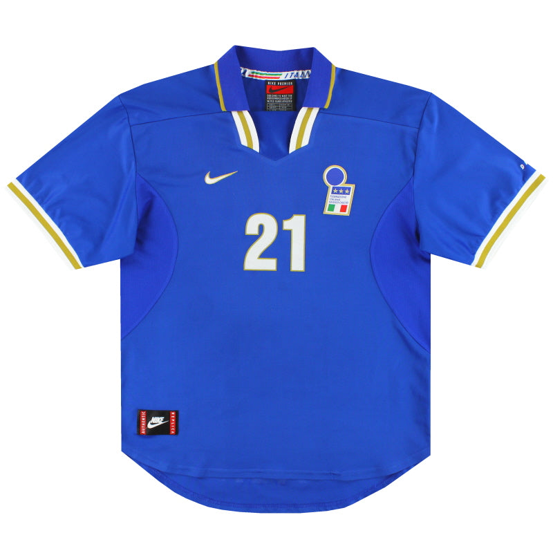 Details - Home shirt as worn when Italy were competing in the 1996 European Championship, being knocked out in the group stage of the competition, finishing 3rd in their group behind Germany and Czech Republic.
