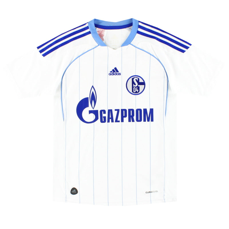 Details - Away shirt as worn when Schalke finished 14th and 3rd respectively in the Bundesliga and won the 2010-11 DB-Pokal, beating MSV Duisburg 5-0 in the final. Also worn when Schalke were knocked out in the semi finals of the 2010-11 Champions League, losing 6-1 on aggregate against Manchester United.