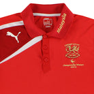 Polo shirt as worn when Cardiff City were rebranded during the close season meaning their home colours were changed from blue to red. As worn when Cardiff City were promoted to the Premier League as champions of the Championship meaning they would compete in the top tier of English football for the first time since 1962