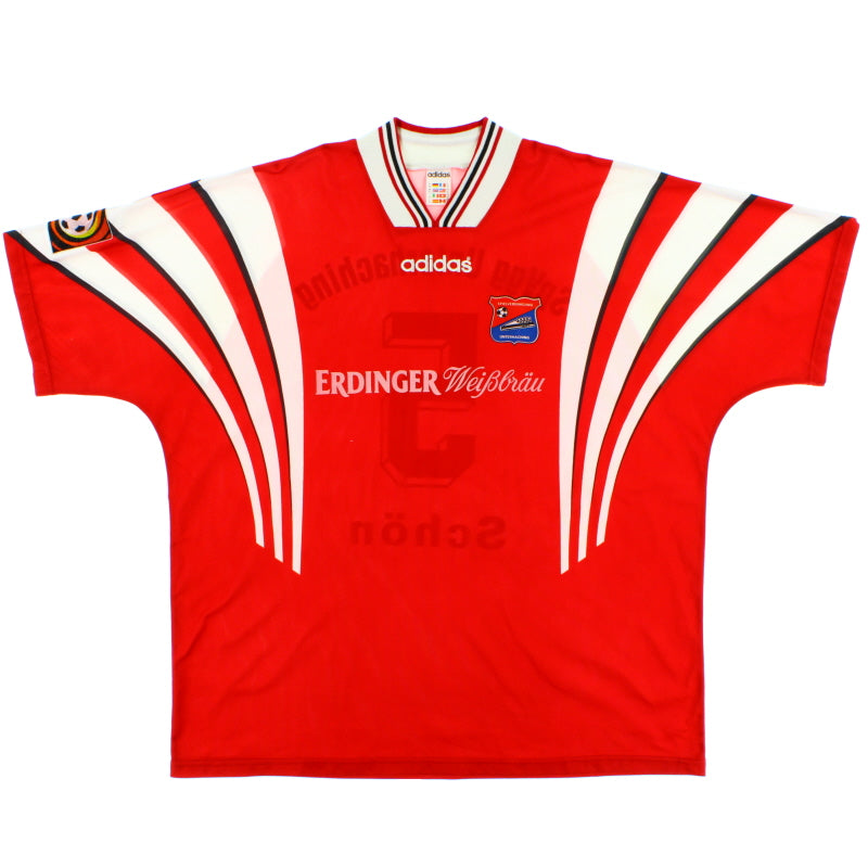 Details - Home shirt believed to have been worn by or issued to Schon of SpVgg Unterhaching during the 1996-98 seasons when Unterhaching finished 6th and 11th in the 2. Bundesliga in respective seasons and were knocked out in the last 16 of the 1996-97 DFB-Pokal, losing 1-0 against St. Pauli.
