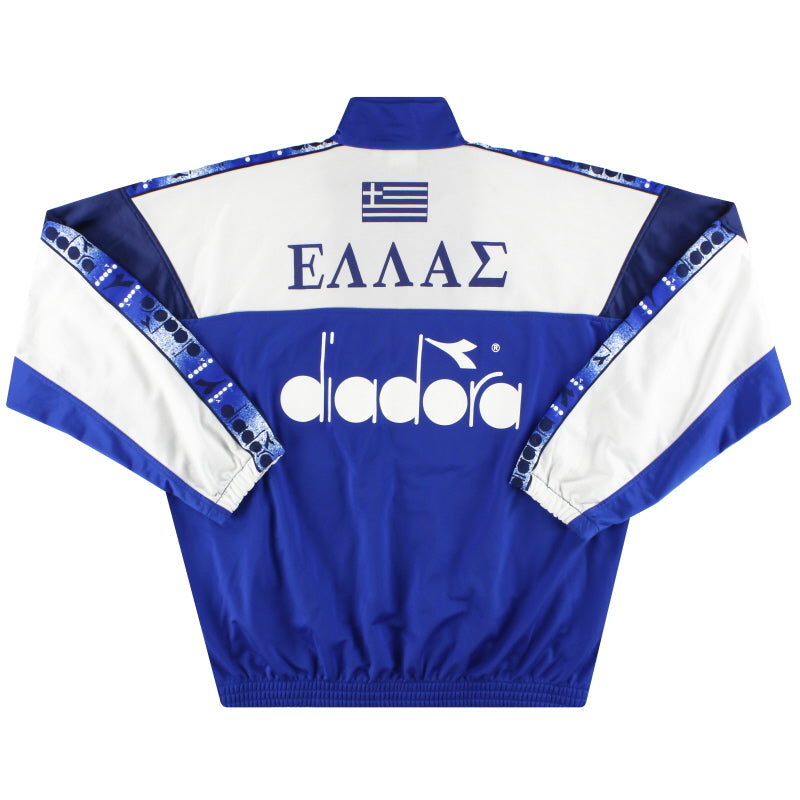 Details - Rare track jacket as worn when Greece were attempting to qualify for the 1998 World Cup, failing to qualify for the competition after finsihing 3rd in their group behind Denmark and Croatia.