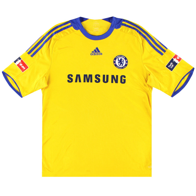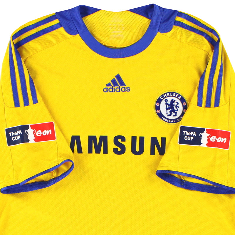 Details - Third shirt as worn when Guus Hiddink became interim manager of the club after Luiz Felipe Scolari was sacked in February and although he couldn't lead the side to a Premier League title with Chelsea eventually finishing 3rd, he did get his side to another FA Cup final which the side won, beating Everton 2-1 at Wembley. Also worn when Chelsea made it to the semi finals of the Champions League, losing on away goals against Barcelona after Andres Iniesta scored a 93rd minute goal in the second leg to send Barcelona to the final