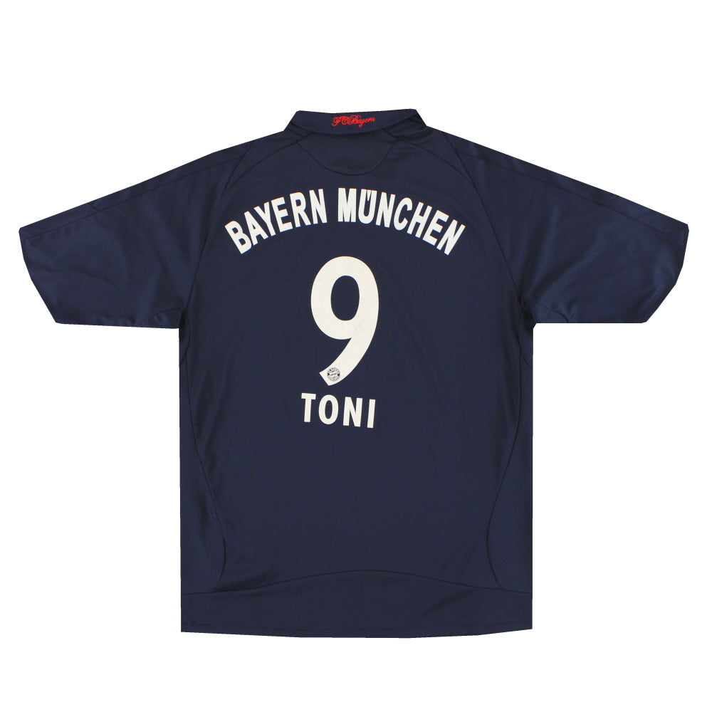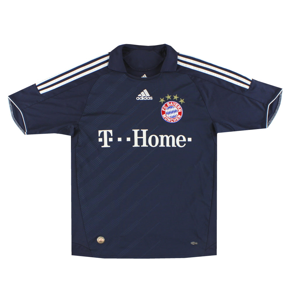Being a Bayern Munich shirt collector must require a lot of storage space as the German giants have worn an incredible number of kits in the past 30 or so years. Red of course is the favoured home colour (although originally white shirts were worn with red only arriving in 1905 when the side joined forces with Munchner Sport-Club who insisted on changing the jersey colour) and on more than one occasion the side have worn several different designs of home kit in the same season. Bayern are also one of the leading pioneers of adopting a completely different kit for Champions League and Cup games - often in a totally different colour. Although white has always been used to trim the Bayern shirt in the early 90s blue also began to creep in as an additional trim colour culminating in the Barcelona-like 1995 striped jersey. More recently red and white hoops or stripes have also been sported. The Bayern shirt is also renowned amongst football kit afficiandos for having the club name printed on the back of the shirt - probably something to do with the fact that in recent years a badge didn't appear regularly on the front of the jersey until 1989! White shirts are the most traditional Bayern change outfits although in the 80s and 90s the club had an unusual tradition of wearing yellow and green for luck when playing their rivals FC Kaiserslautern. The club have stayed loyal to local suppliers when it comes to kit and have been with adidas since the early 1970s. In fact for several years adidas also acted as shirt sponsor for the side before being replaced by Magirus Deutz in 1979. Iveco, Commodore and Opel have subsequently sponsored the team with mobile phone company T-Mobile arriving in 2002.