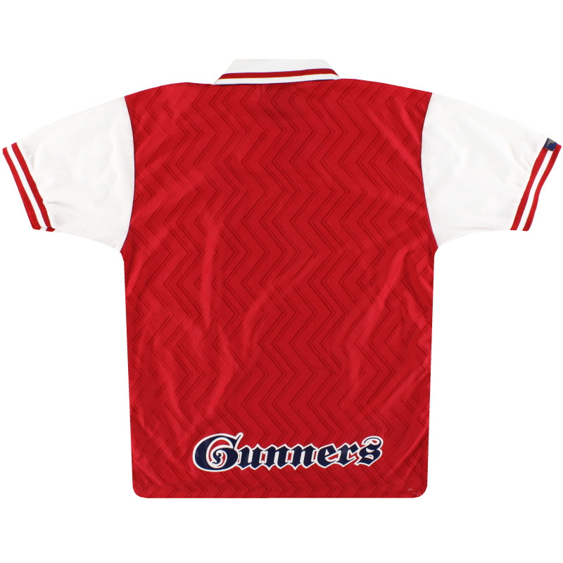 Arsenal were founded as Dial Square FC in 1886 and have Nottingham Forest to thank for their first ever kit. When several ex-Forest players joined the side they brought with them their old red football jerseys and it was decided that the most economical way to kit out the team was in the same colour. The jersey was dark red (or redcurrant as it was renamed when Nike memorably resurrected the design in 2005 to commemorate the club’s last season at Highbury) and was paired with white shorts and dark red or navy socks. The iconic Arsenal kit of red football shirts and white sleeves first appeared in 1933 when then manager Herbert Chapman devised the design in an attempt to create a more distinctive strip for his team. Legend has it that inspiration came from an individual Chapman spotted at Highbury who was wearing a red tank-top over a plain white shirt. The highly individual look is much loved by Arsenal fans who were delighted when Nike launched a classic interpretation of the jersey in 2010 after a few years of ‘tampering’. Gooners are equally as passionate about their preferred away kit colours and almost unanimously opt for yellow and blue - a colour scheme that gained popularity in the 1970s. Prior to then, white and occasionally navy football shirts were the away colours of choice. Navy has actually played an important part in Arsenal’s colour identity over the years and has featured in many home and away kits. Arsenal embraced shirt sponsorship in 1981 when they struck a deal with Japanese electronics company JVC. The relationship was to last until 1999 and since then the company have only had three sponsorship deals: Sega/Dreamcast, O2 and Emirates Airlines, creating one of the smallest sponsor role calls in English football