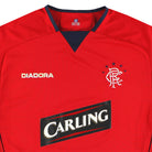 Third shirt as worn when Rangers finished as champions of the Scottish Premier League, finishing 1 point ahead of second placed Celtic, and won the Scottish League Cup, beating Motherwell 5-1 in the final. Also worn when Rangers were knocked out in the group stages of the UEFA Cup, finishing 4th in their group behind AZ Alkmaar, Auxerre and GAK, after being knocked out in the third qualifying round of the Champions League, losing 3-2 on aggregate against CSKA Moscow.
