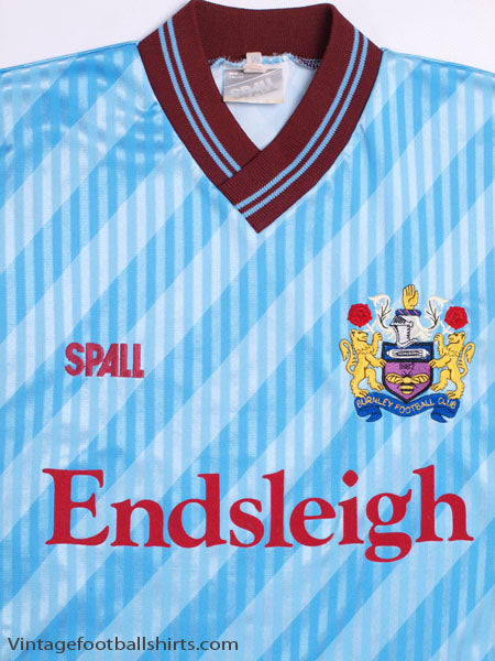Details - Away shirt as worn when Burnley finished 16th in the Fourth Division and were knocked out in the first round of the FA Cup, losing 2-0 against Chester City. Also worn when Burnley were knocked out in the second round of the League Cup, losing 2-1 on aggregate against Luton Town.