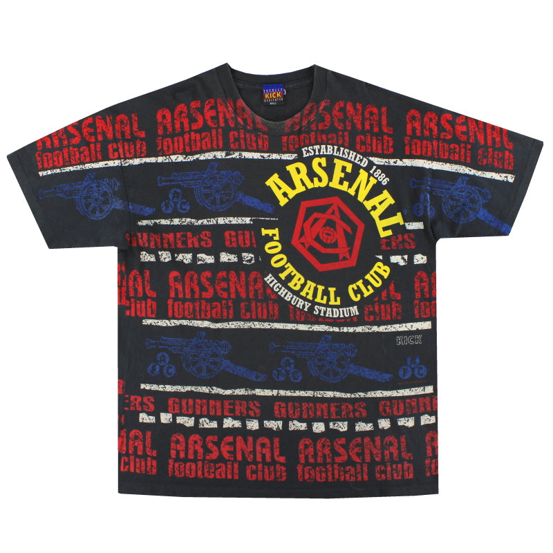 Graphic tee released during the 1990's when Arsenal were competing in the First Division/Premier League, winning the title in the 1990-91 and 1997-98 seasons.