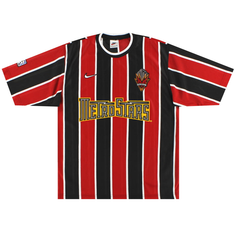 Details - Home shirt as worn when Metrostars finished bottom of the Eastern Conference in the MLS, but did make it to the semi finals of the US Open Cup, losing 2-1 against Dallas Burn
