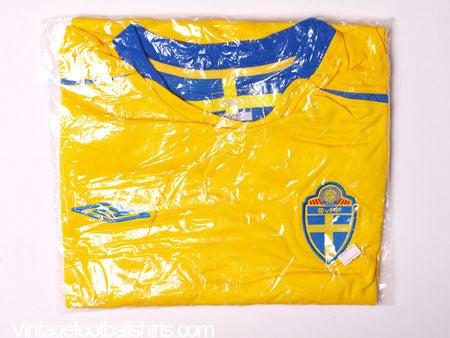 Details - Home shirt released for Sweden Centenary year, 1904-2004 embroidered under the badge. As worn when Sweden were attempting to qualify for the 2006 World Cup. Sweden finished as runners up in their group, finishing behind Croatia, but did qualify for the competition as one of two best runners up.