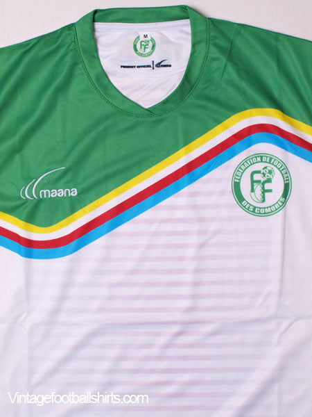 Details - Away shirt as worn by Comoros Island. The national side were first founded in 1979 but it wasn't until 2003 the side began competing in the Africa Cup of Nations and later became members if FIFA in 2005. The shirt was worn during qualifcation for the 2017 Africa Cup of Nations with Comoros finishing bottom of their group with 3 points from their 6 games.